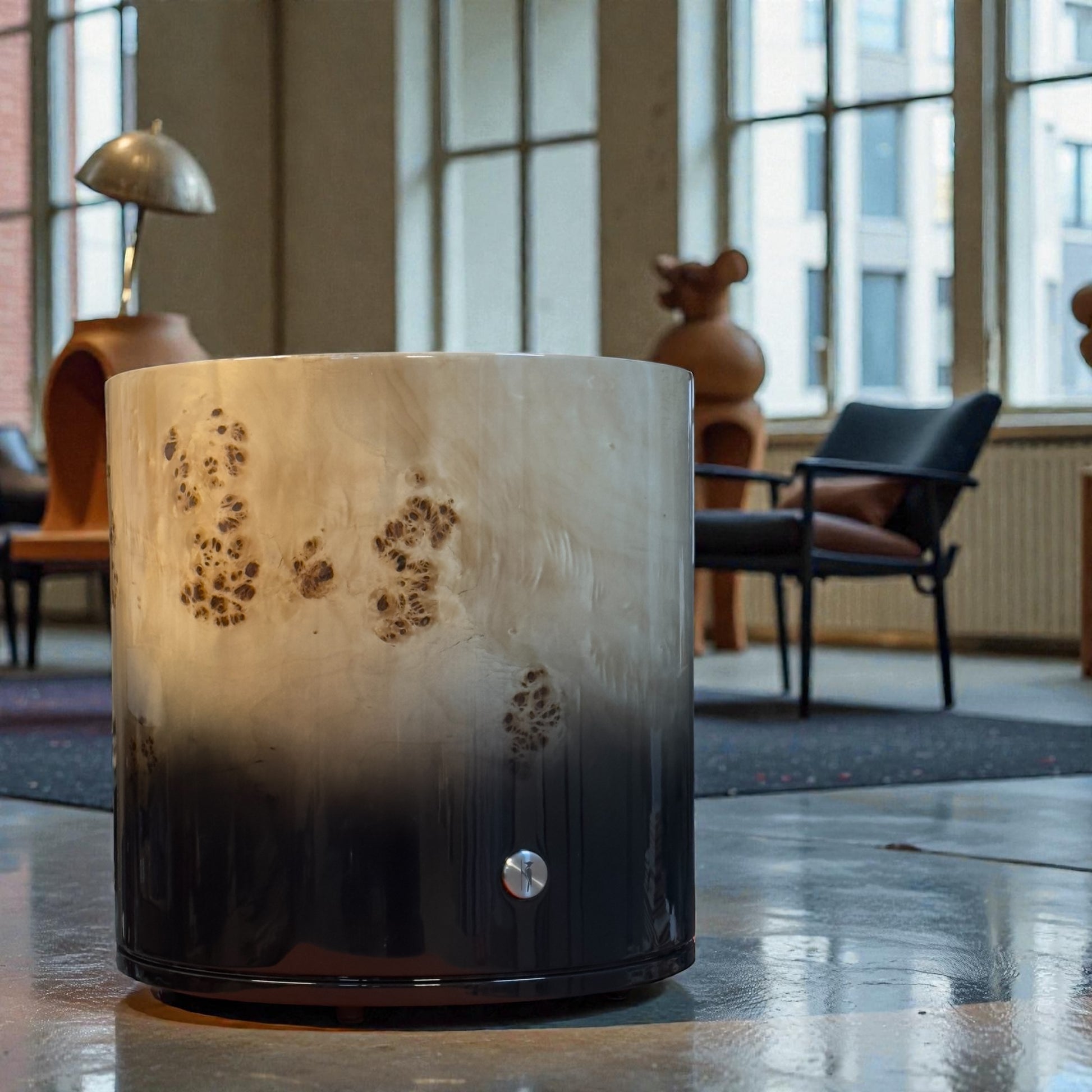 Özenle seçilmiş tek parça mazel kök kaplamalardan hassas el işçiliği ile üretilen bu ürün Marangoz Craft tarafından özel olarak tasarlanmıştır.Çelik civatalarla gövdeye bağlanan alt tablasına entegre edilen 360° hareket kabiliyetine sahip beş adet tekerlek, sehpanın kolayca yer değiştirmesini sağlar.Bu alt tabla temizlik esnasında gövdeyi deformasyonlara karşı korur.Kolaylıkla söküp takılabilen tabla, değişim veya onarım imkanı sunar.