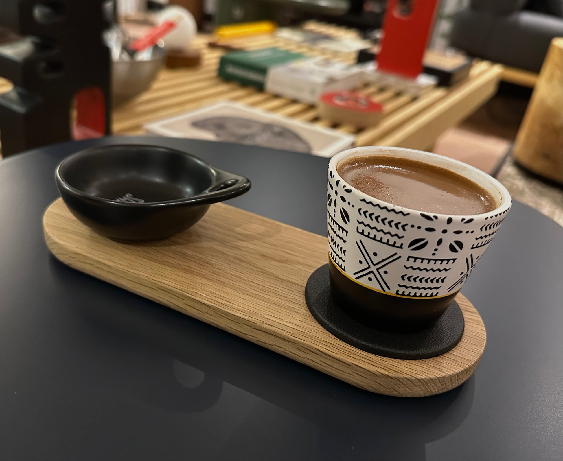 Üst kısmına adapte edilen deri kaplamalı parça, yüzeye bardağınız bıraktığınızda sessiz ve yumuşak bir temas sağlar.Alt bölümünde bulunan EPDM sünger destekler, yüzeye temas eden alanı keserek zemini korur; altlığın kaymasını ve titreşimi önler.Aşınmalara karşı dayanıklıdır.Üzeri doğa dostu ve sağlıklı,su bazlı ultra mat görünmez cila ile korumaya alınmıştır.